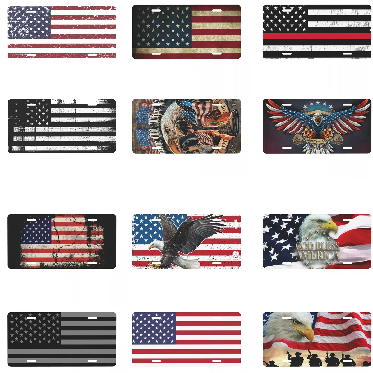 American Flag Bald Eagle Metal License Plate USA Patriotic Aluminum Car Front Vanity Tag 12x6 Inch